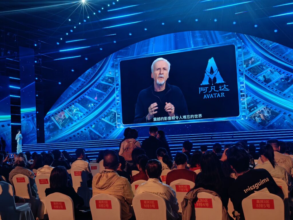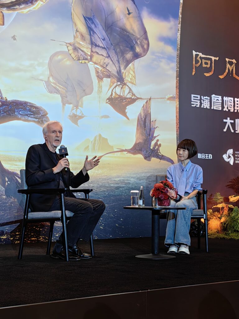 Az idei filmfesztivál legnagyobb dobása is inkább a szélesebb közönséget célozta meg a művészfilmek rajongóival szemben. A kínai sztárok és Juliette Binoche mellett a másik kiemelt külföldi vendég James Cameron volt, aki Zoe Saldanaval együtt személyesen érkezett Hainanra az Avatar 3 Tűz és hamu kínai premierjére, melyet december 8-ra időzítettek. Három idősávban, alkalmanként öt moziteremben zajlottak a vetítések. Azon szerencsések között lehetett a cikk írója is, akik LED kijelzőn, 3D-ben izgulhatták végig Pandora legújabb kalandjait, és másnap a rendező mesterkurzusán is részt vehettek.